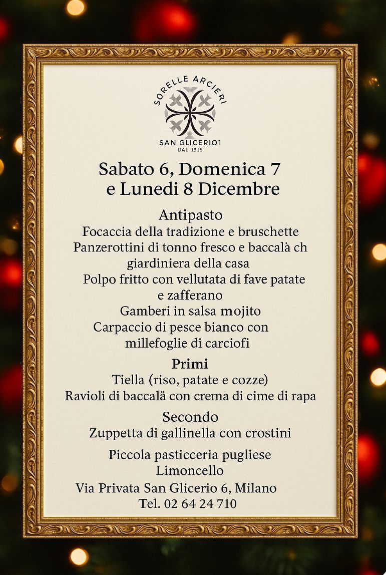 Daniela e Cristina Arcieri, figlie di Giovanni settimo di 11 fratelli che dal 1972 ha ricreato una casata di storici ristoranti, pugliesi di pesce a Milano, hanno ereditato la semplicità dei suoi piatti, rivisitati negli anni, consigliano ai propri commensali un colloquio con il personale di sala per assaporare ogni qual volta si entri "in questa famiglia", piatti di diversa invenzione e diverso gusto, creati con ingredienti di fresco consumo ed altissima qualità.